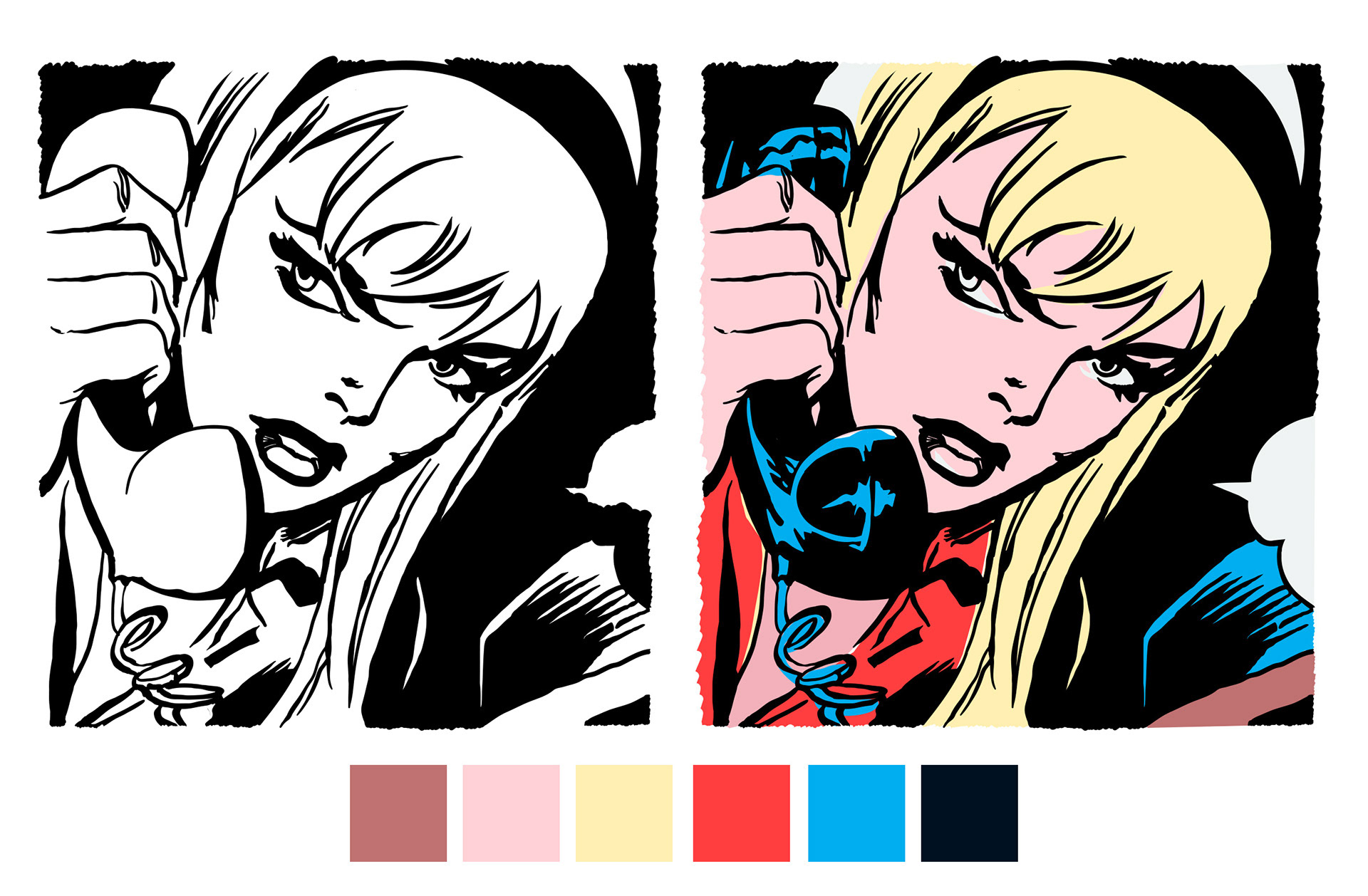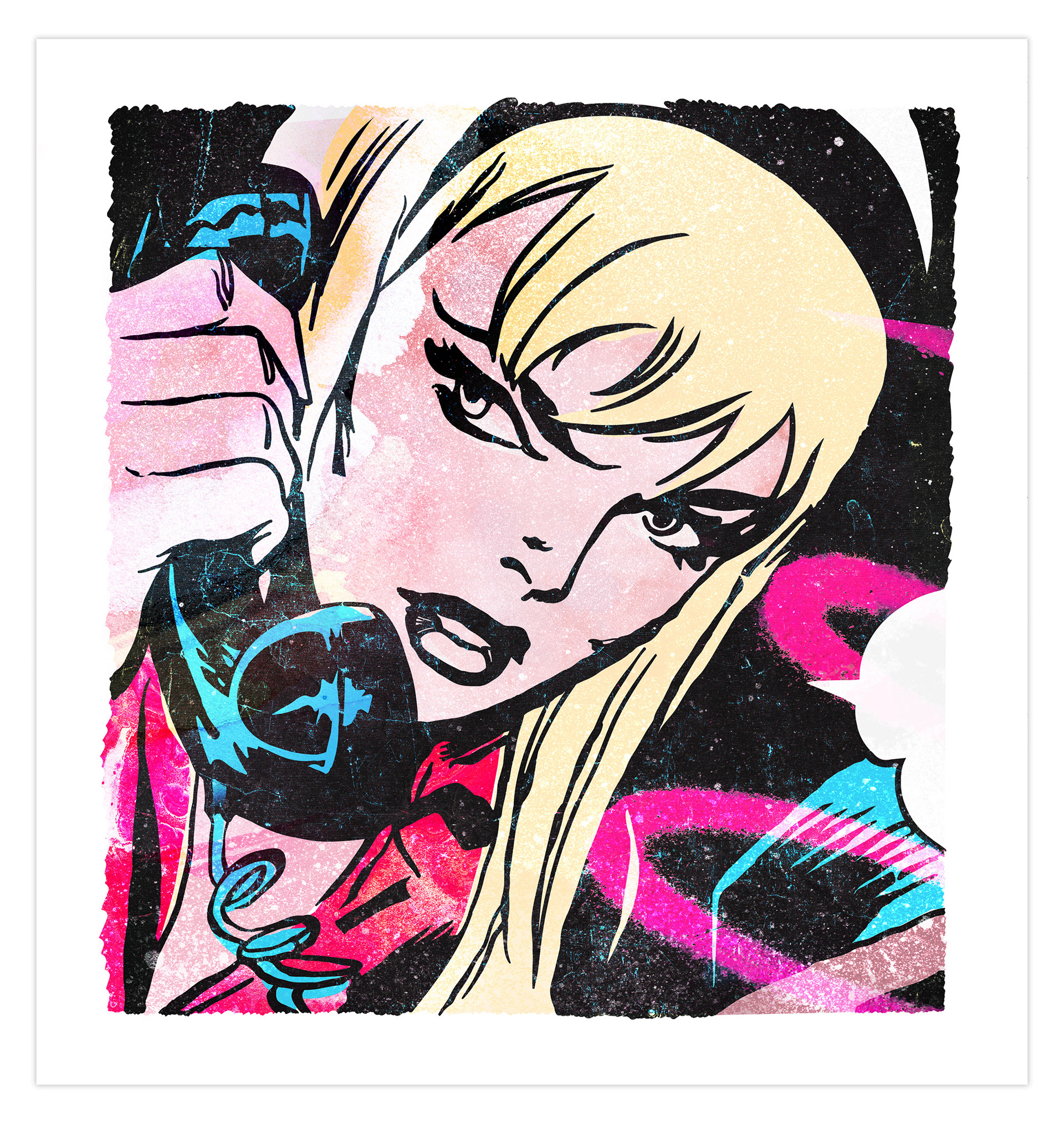 Created using a combination of hand drawn figurative comic book inspired line-work,